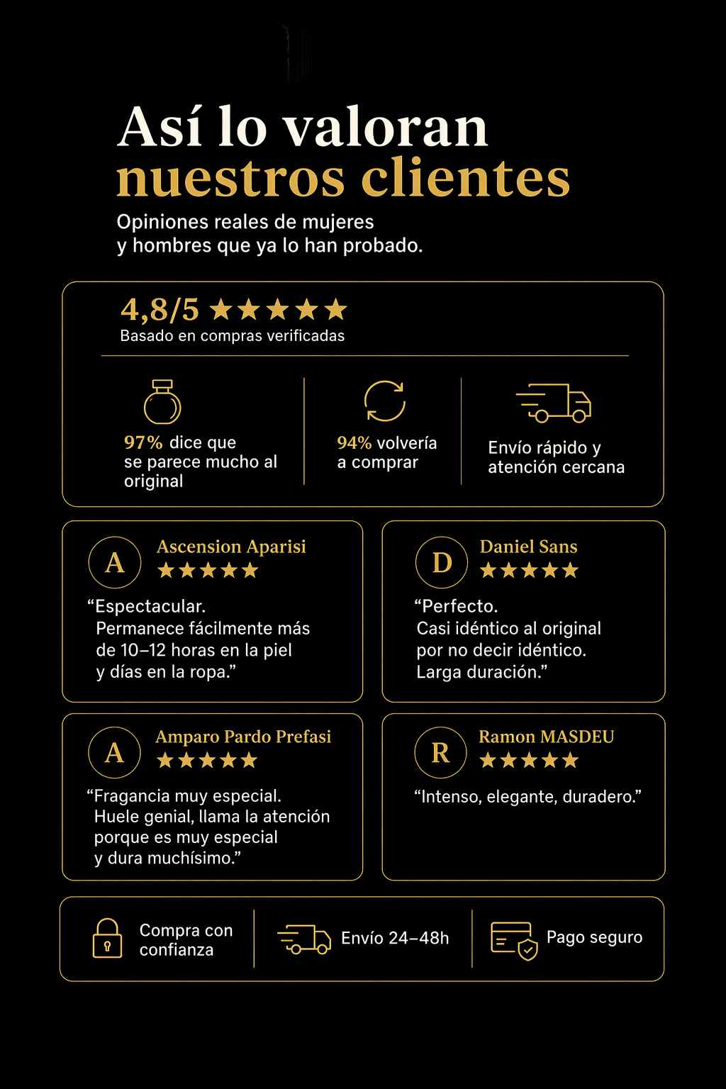 de clientes dicen que la fragancia es una coincidencia cercana o exacta con su perfume de diseñador